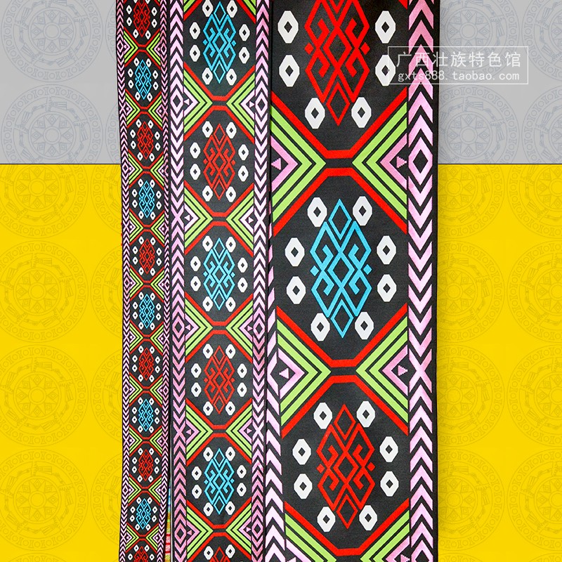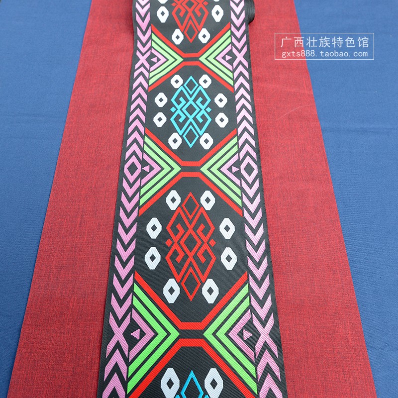 Zhuang traditional pictured lace with flower side Guangxi ethnic customs decoration fabric Magnificent Brocade Fabric Webbing Webbing Webbing Fabric Webbing