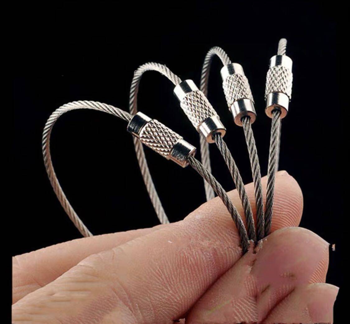 EDC304 stainless steel keychain storage key ring outdoor with lock hanging ring box bag tag wire rope