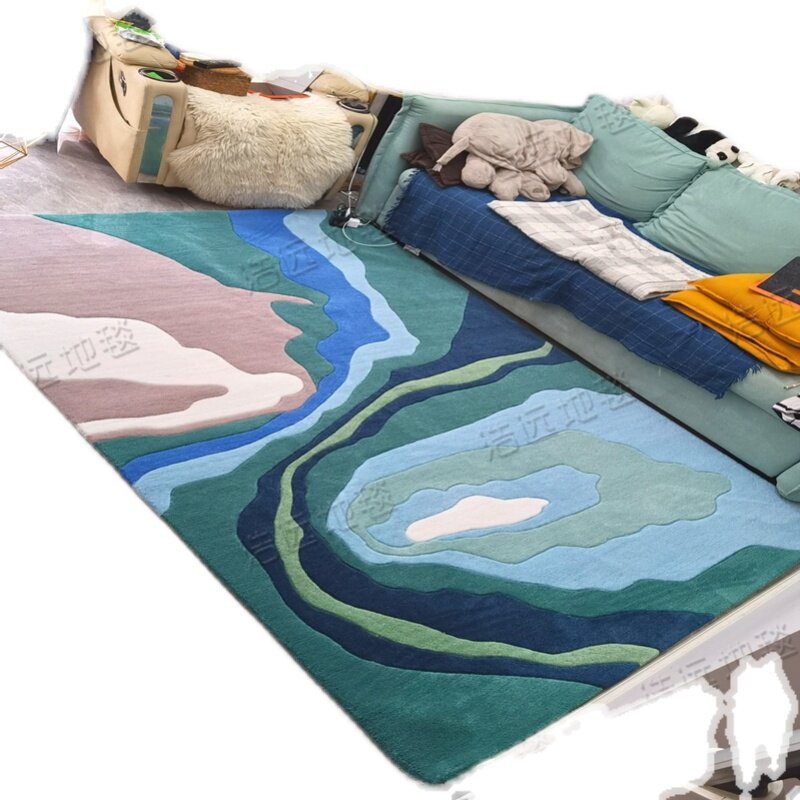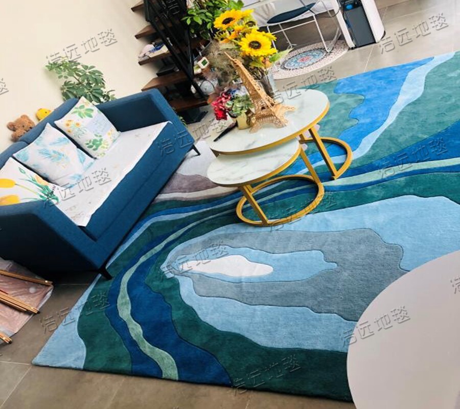 Blue Mediterranean European-American model room light luxury carpet living room coffee table sofa bedside study handmade carpet