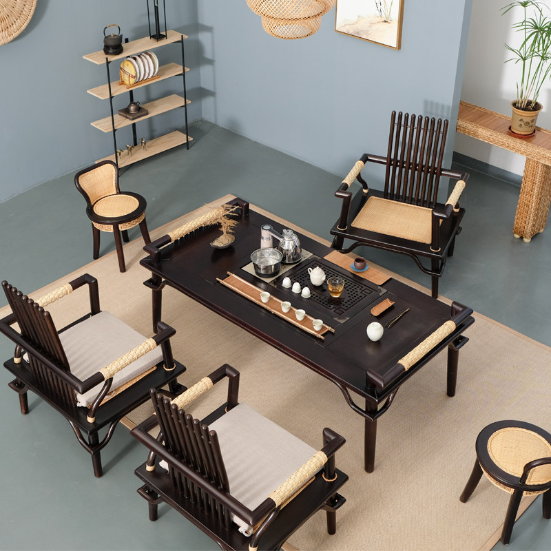 Black walnut tea table 3 main chairs 2 small back chairs Mahogany tea table 1 main chair 5 small back chairs Black walnut tea table 1 main chair 5 small back chairs Mahogany tea table 3 main chairs 2 small backs