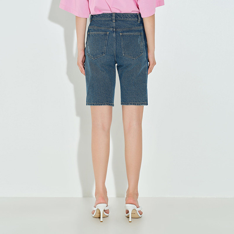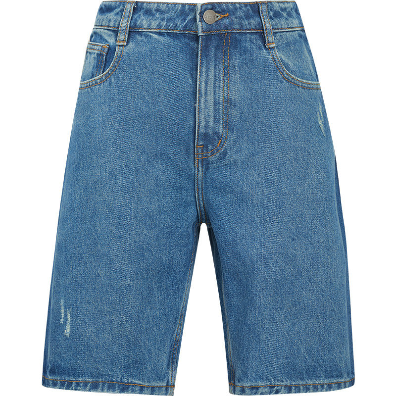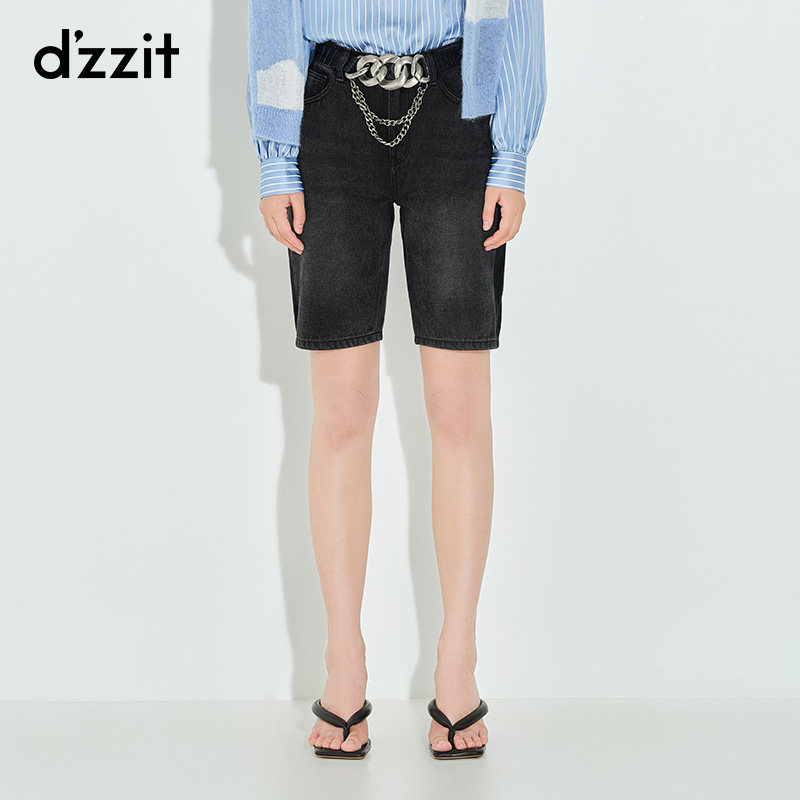 dzzit Disuchun new blue loose denim stitching straight shorts women 3D1R2031S