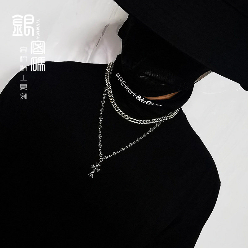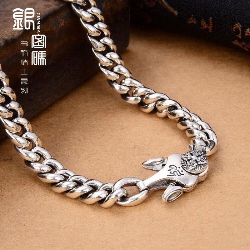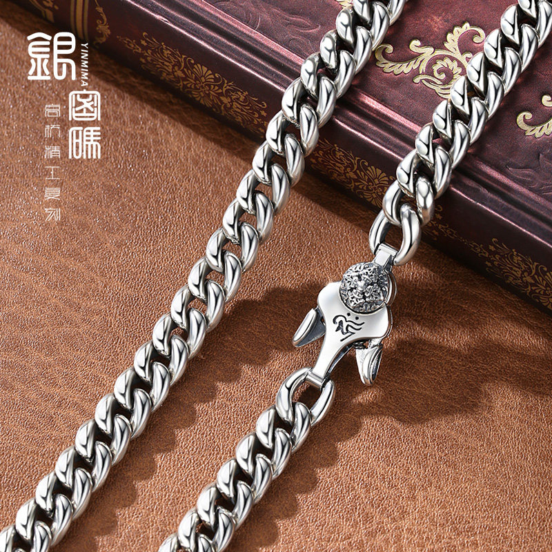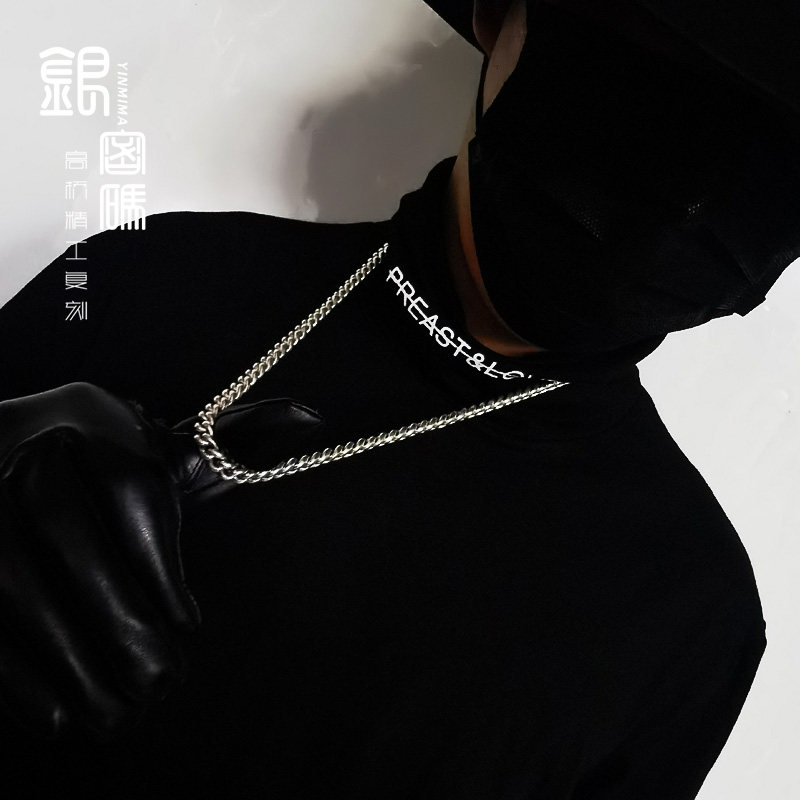 Silver code Cuban necklace men's sterling silver personalized fashion tide ins hip hop thick domineering sweater chain for boyfriend