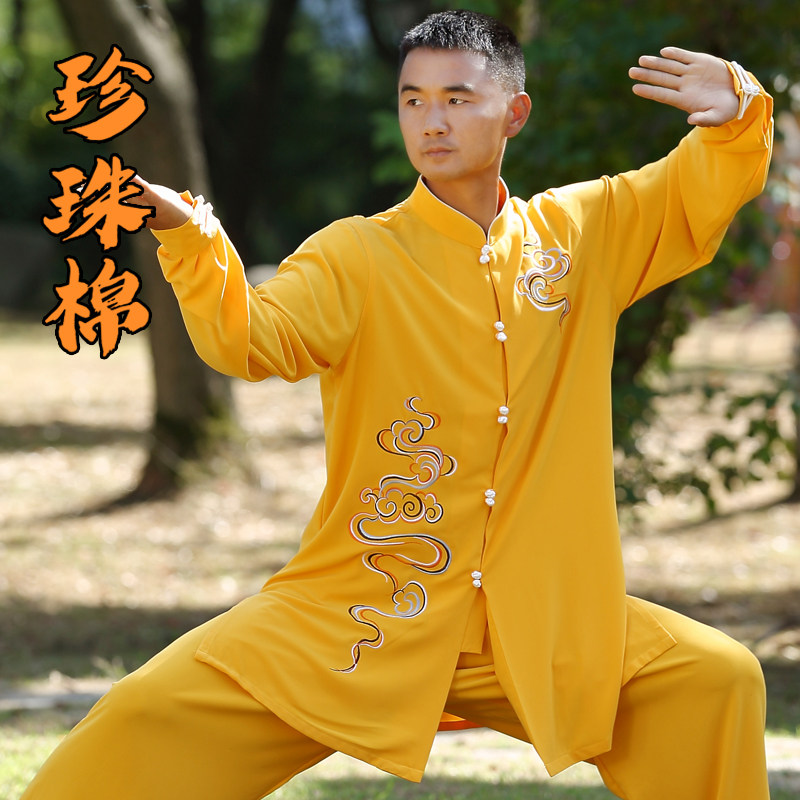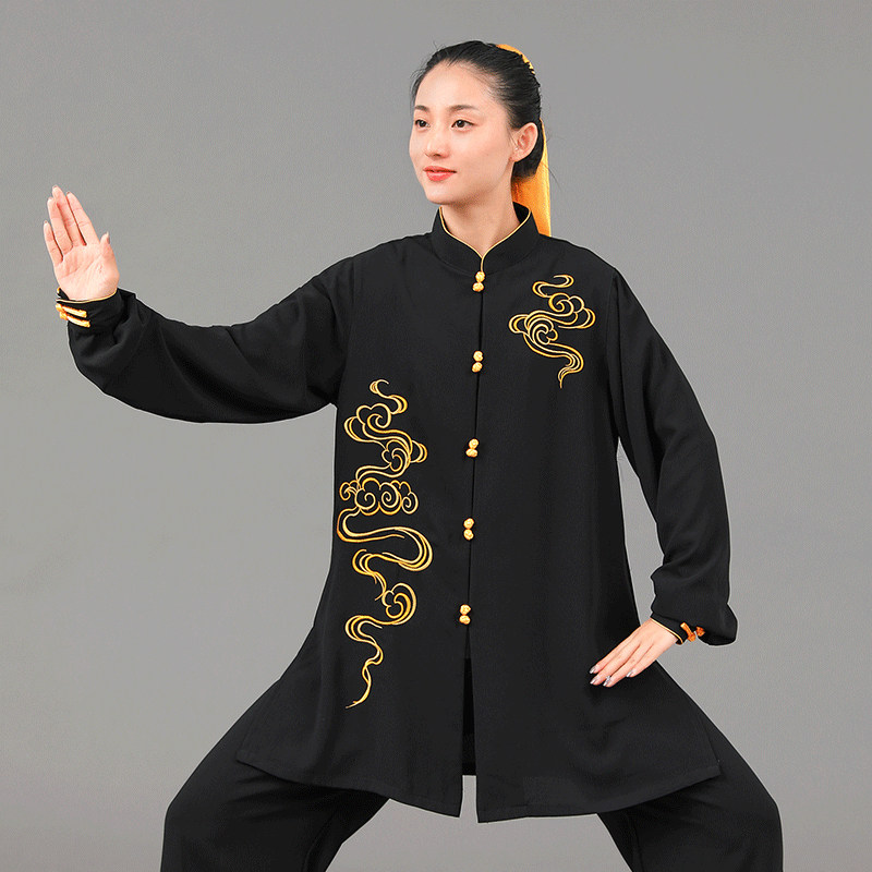 2022 elastic pearl cotton tai chi boxing clothes spring, autumn and summer new elegant auspicious cloud embroidery martial arts performance training clothes
