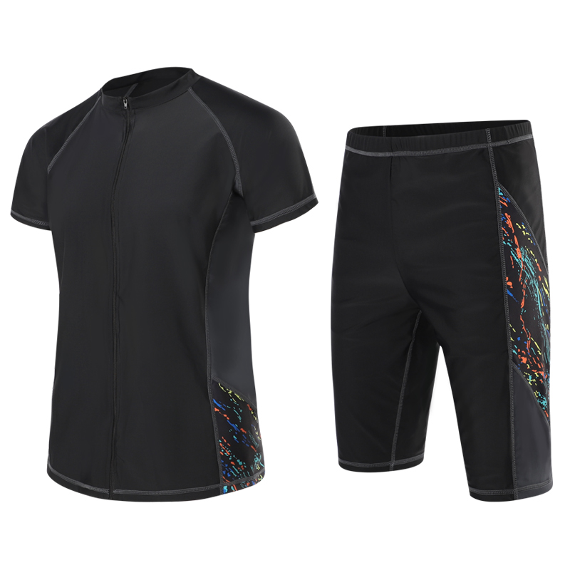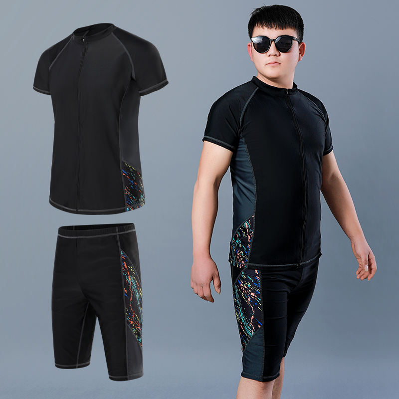 Large size swimming trunks men's professional quick-drying boxer five-point pants short-sleeved plus fertilizer to increase 300 pounds of hot spring swimming suit