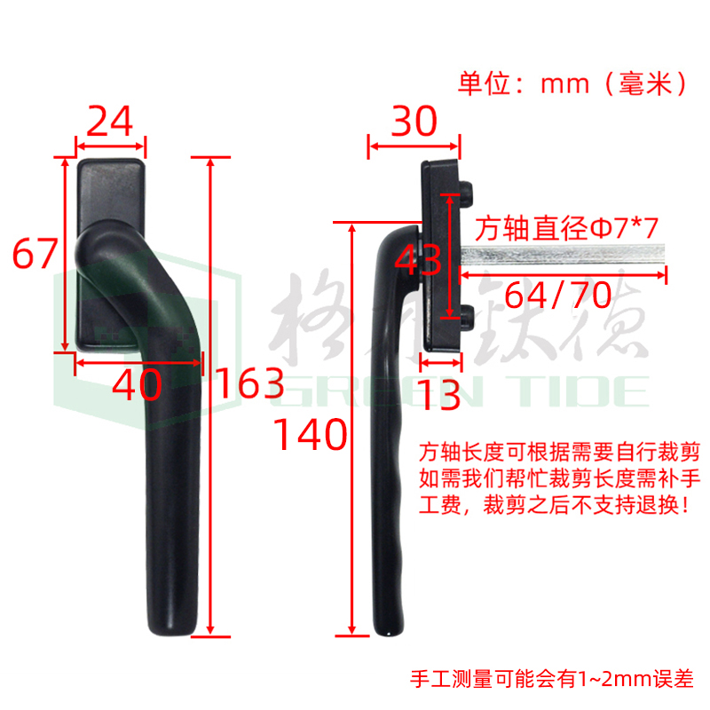 Yarn curtain integrated crooked handle double layer window flat handle plastic steel aluminum alloy flat door window handle bend handle handle