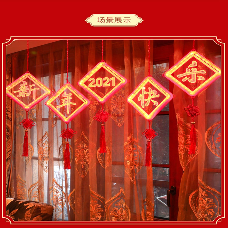 Solar led Chinese knot luminous Spring Festival lantern hanging foo door window sill pendant luminous wall-mounted pendulum outdoor