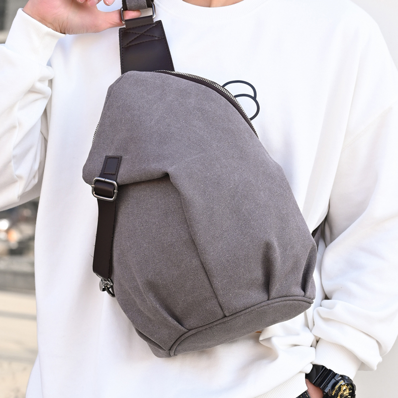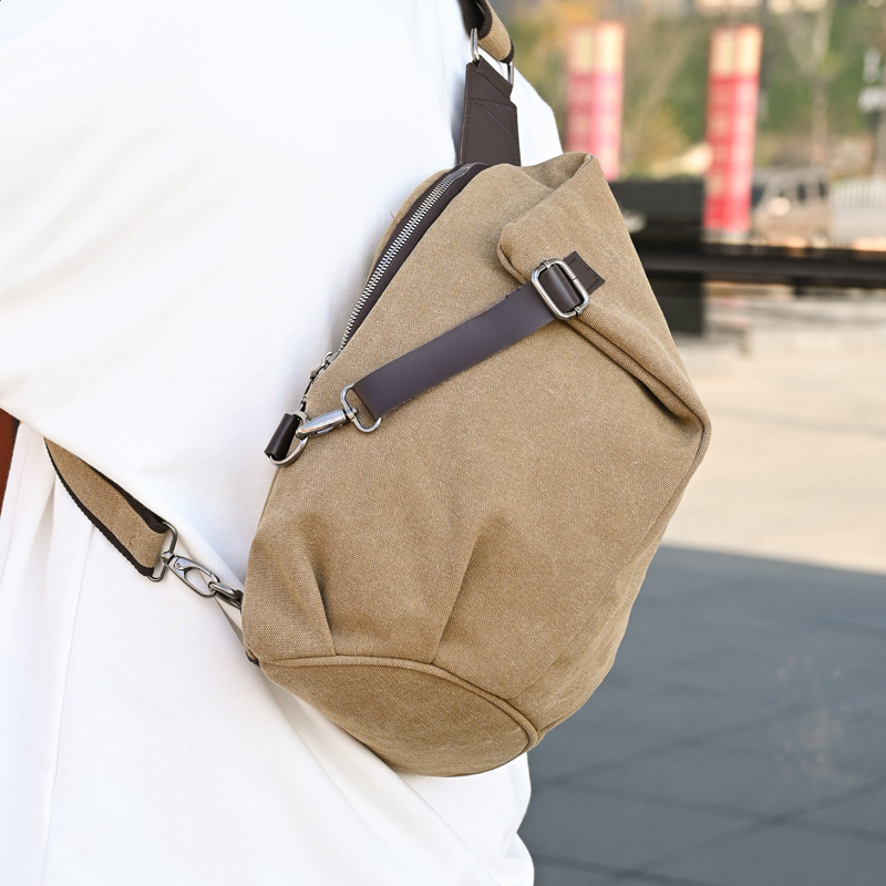 Casual men's chest bag simple retro one-shoulder messenger bag large-capacity 10-inch flat iPad wear-resistant canvas backpack