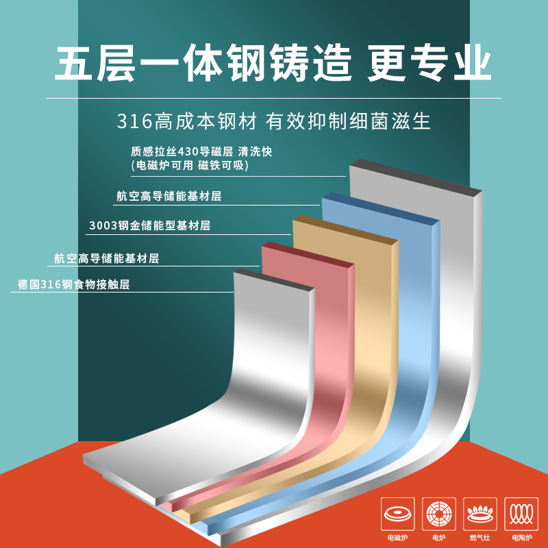 ☆ Recommended ☆ 316L medical material five-layer steel household set (20cm soup pot + 16cm frying pan to send lid)