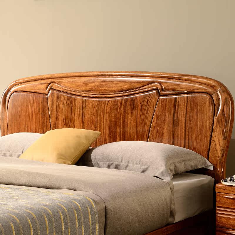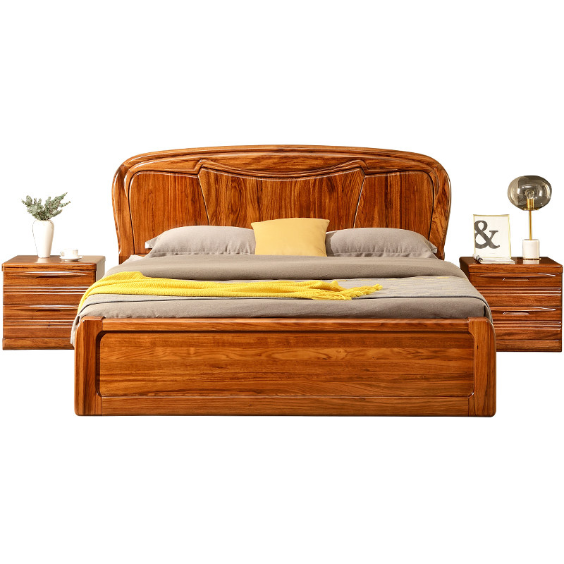 Solid wood bed ebony double bed 1 8 meters 1 5 meters modern Chinese wedding bed logs all solid wood master bedroom furniture