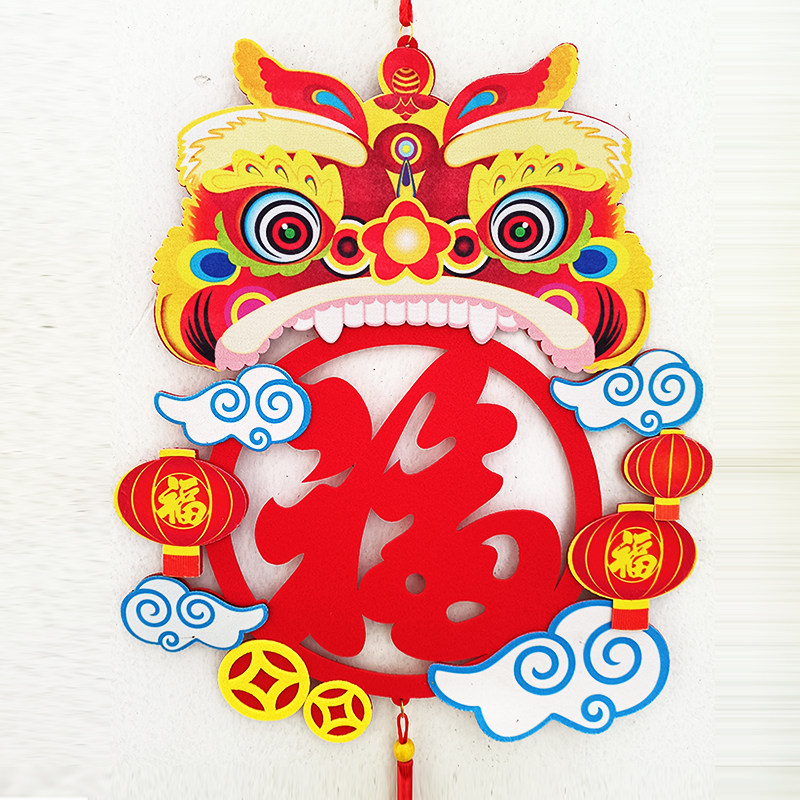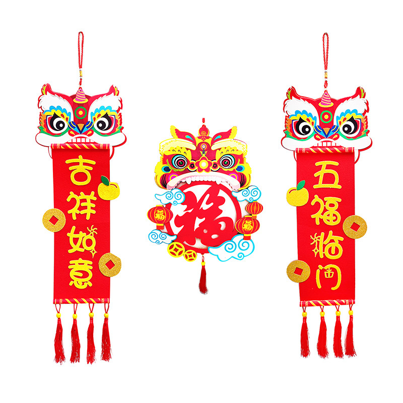 Lion Wake Set-Auspicious Wufu Couplet, Fu Character Pendant, Lion Wake Set-Wu Fu New Year Couplet