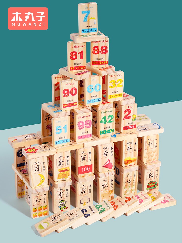 100-grain double-sided new Chinese character domino 100-grain double-sided digital Chinese character domino 100 grain bifacial fruit animal domino 100 grain double sided fruit Chinese character domino 100 bifacial animal number