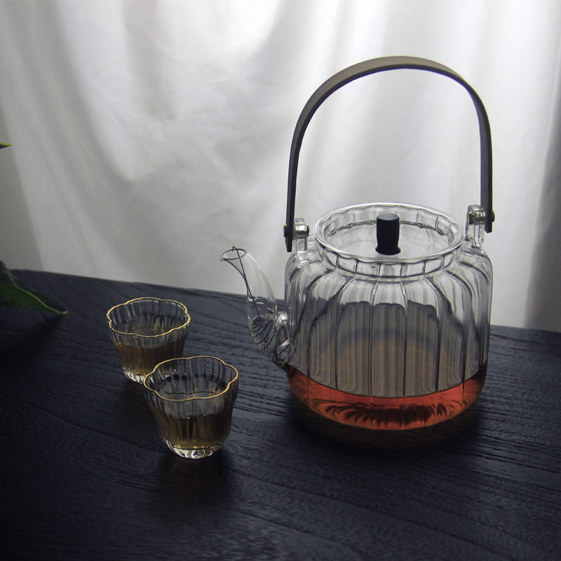 High-temperature-resistant glass jug Tie-beam teapot large-capacity bubble teapot home cooking tea Kettle Black Crystal Stove can be heated