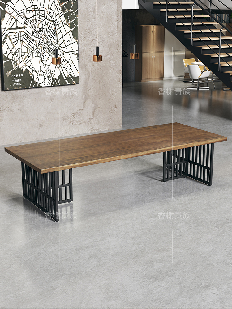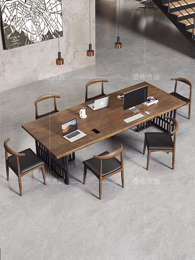 Solid wood conference table long table industrial style office furniture rectangular large table retro negotiation table and chair combination