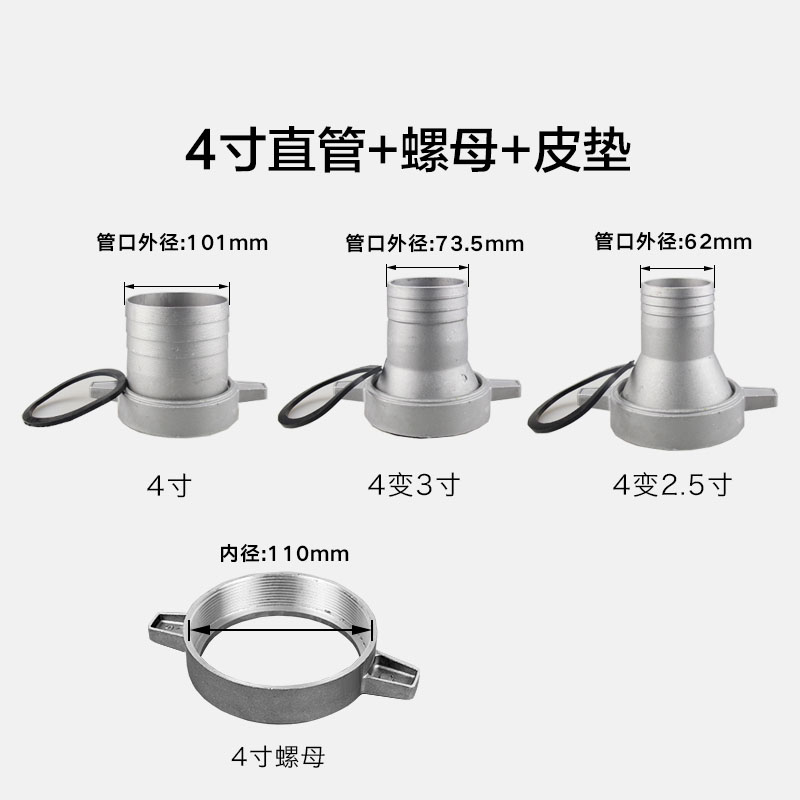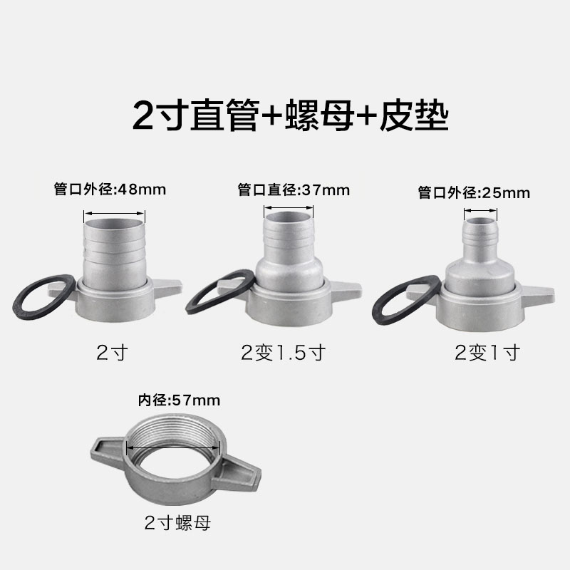 Petrol Engine Water Pump Accessories Self-Suction Pump Nut Straight Pipe Aluminum Alloy Water Pipe Joint 2 3 4 Inch Water Pump Joint
