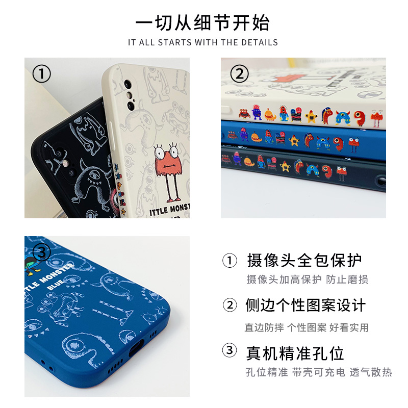 Side little monster phone protective case Apple 7 8plus x xr liquid silicone straight edge,iPhone7 8plus x xr xsmax