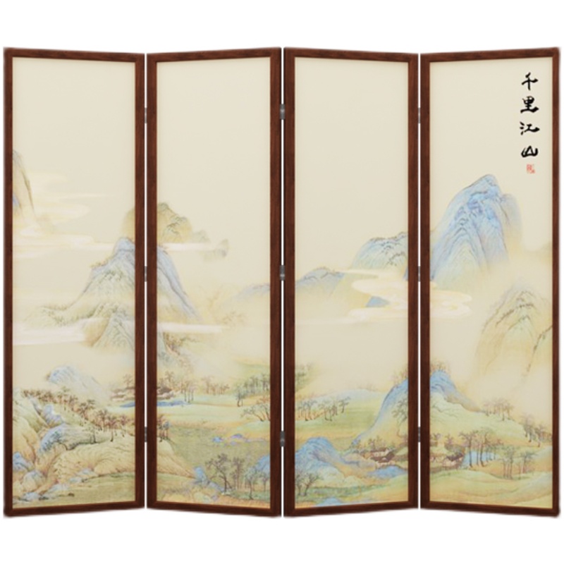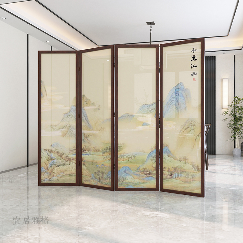 New Chinese Screen Solid wood partition Xuanguan Living room Custom Folding Mobile Brief of the modern thousands of miles Jiang Shan photo-folding screen