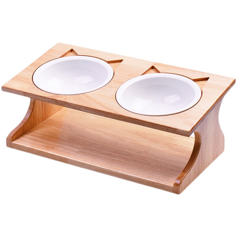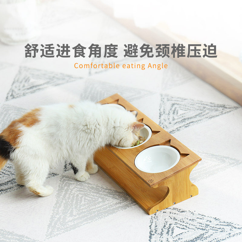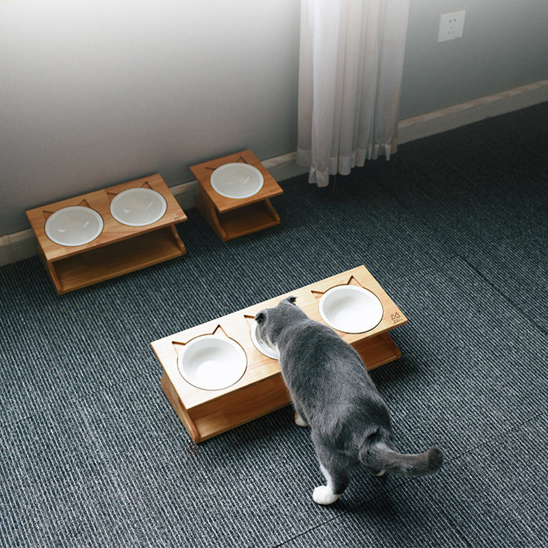 Cat Bowl Solid Wood Table Bowl Bowl Ceramic Double Bowl Triple Bowl Cat Rice Protects Cervical Personality Pet Supplies
