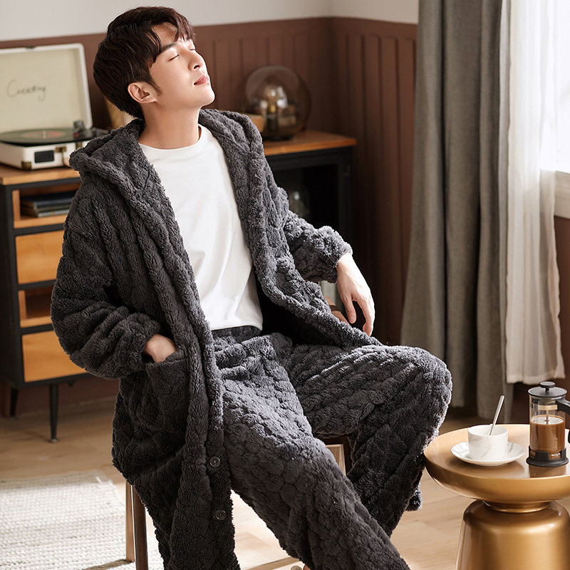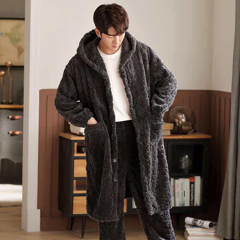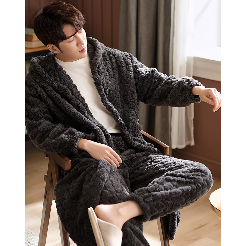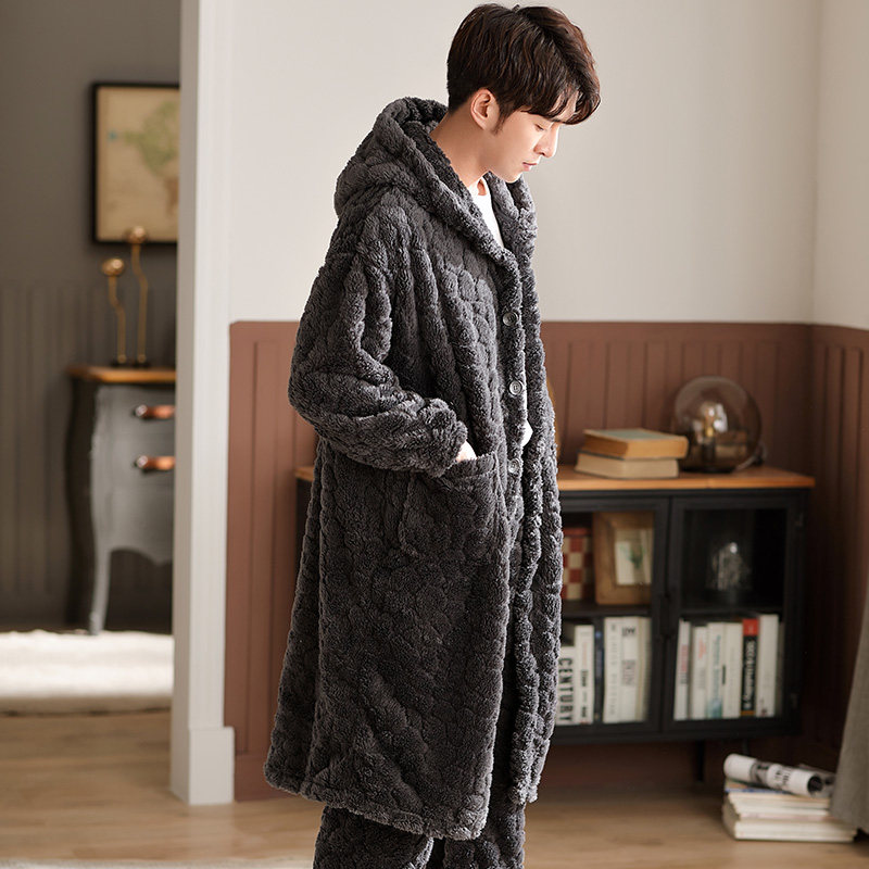 Nightgown Men's pajamas autumn and winter thickened velvet coral velvet winter morning robe Flannel long version bathrobe Home clothes