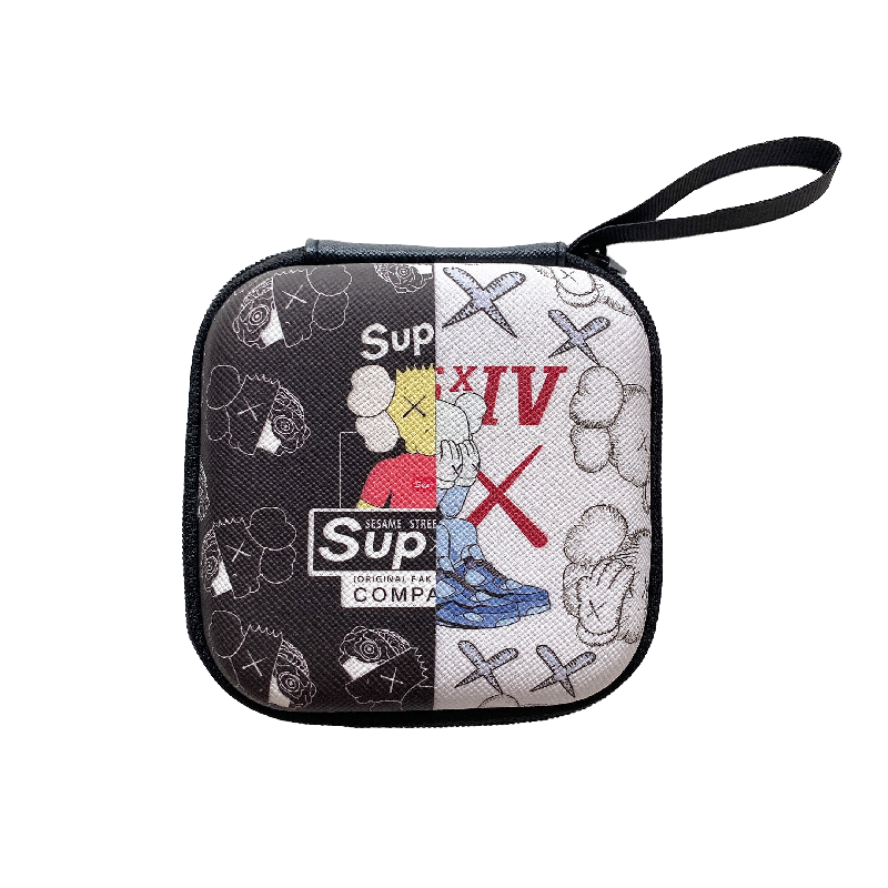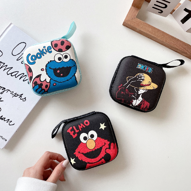 Cute cartoon headphone bag mobile phone tablet data cable charger storage bag anti-fall leather digital finishing box