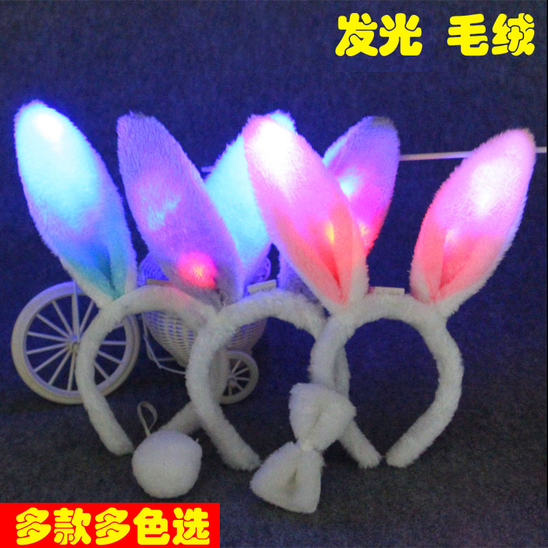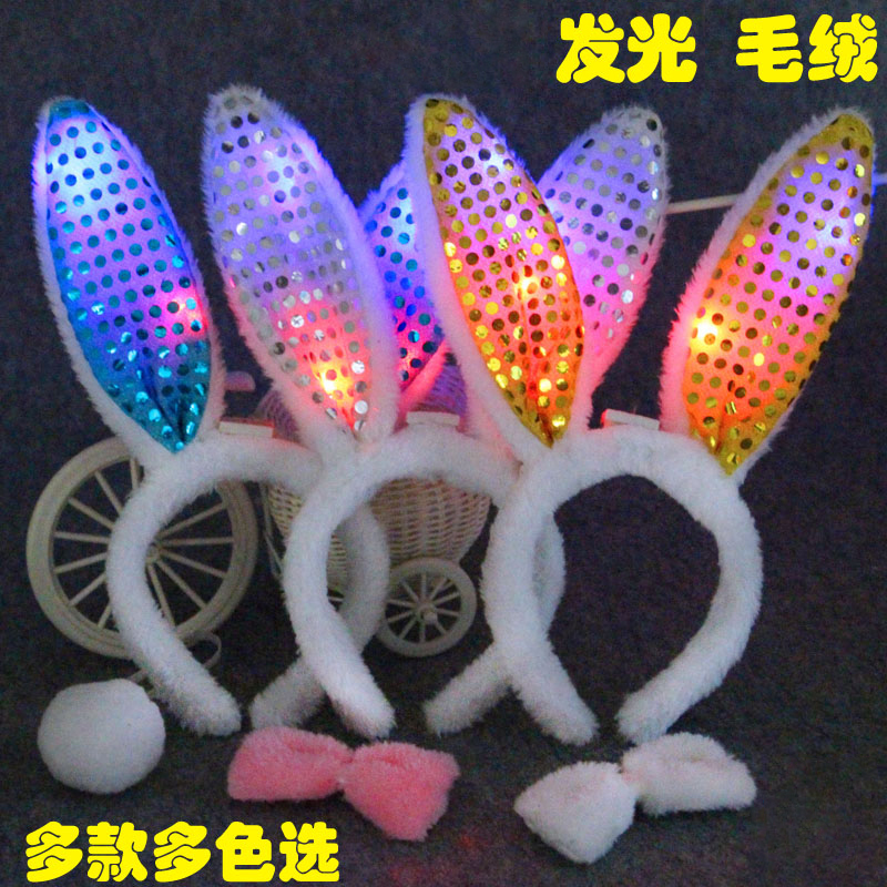 Children's performance Performance Show Hair Hoop Rabbit Ears Rabbit Girl Hair Clip Cute Head Accessories Concert Flash Mask Hair hoop