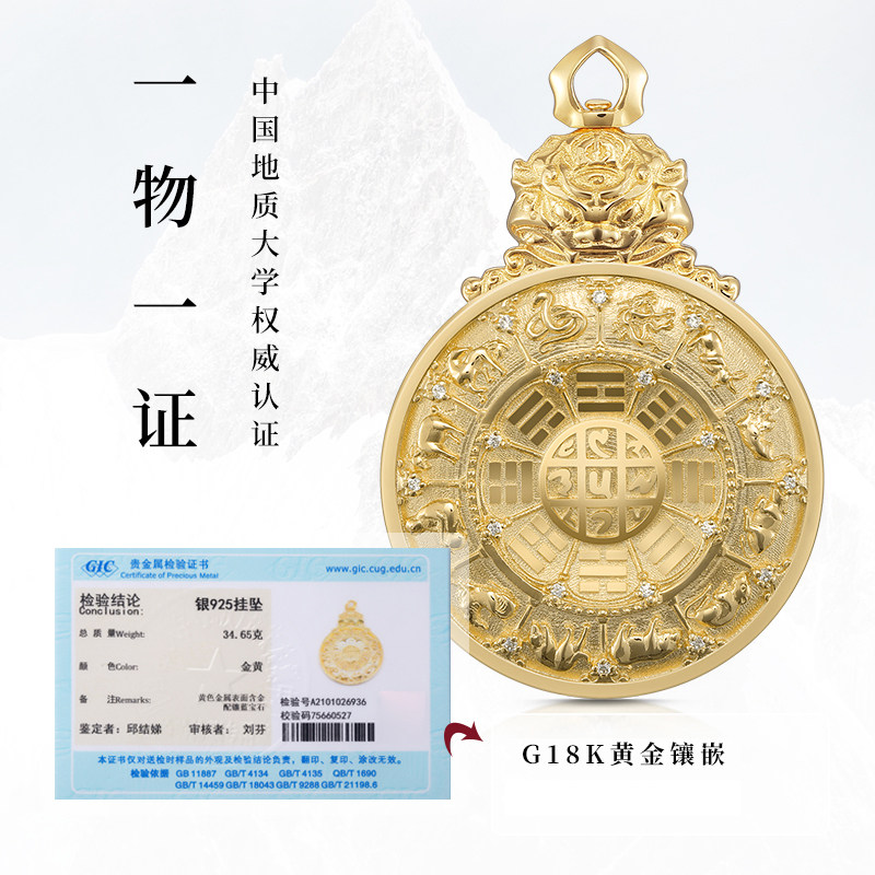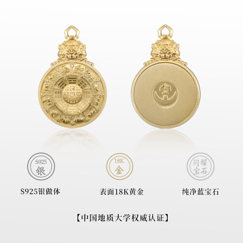 Luo Sanniang developed Tibetan Taiyi Jiugong Bagua brand sterling silver 18K gold sapphire men's and women's necklace pendant