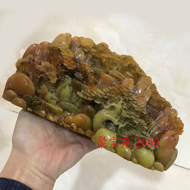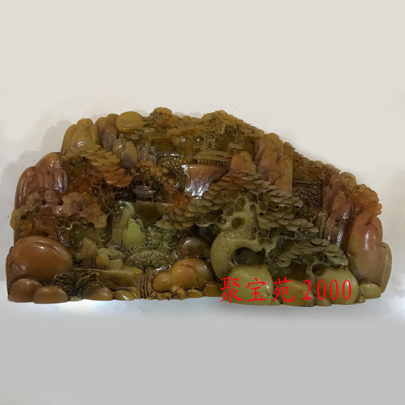 Huanglong jade step by step high ornament office home imitation jade town house handicraft landscape stone jewelry old ornaments