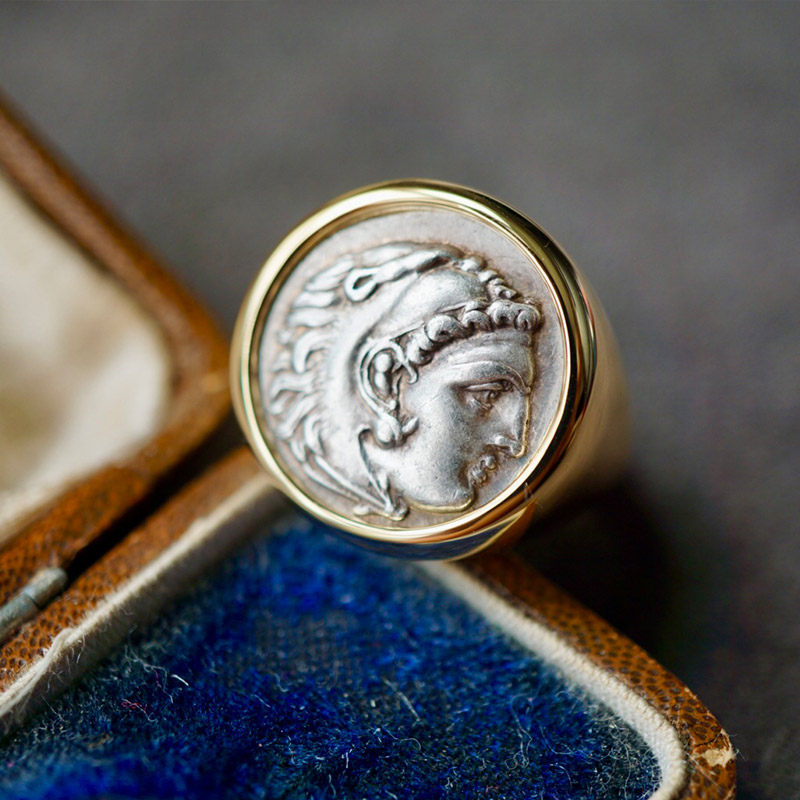 Ancient Roman Greek gold Silver coin Athena Alexander owl Owl Antique Numismatic Gold Ring Pendant-Taobao