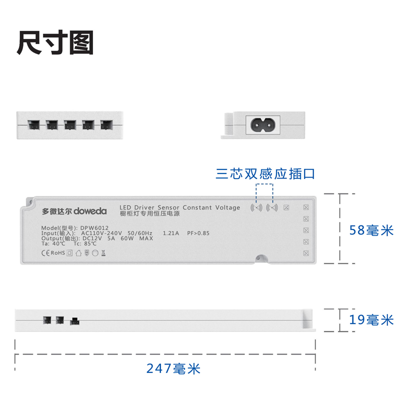 60W integrated cabinet light power supply Human body sensor Hand sweep sensor Door touch sensor Touch sensor