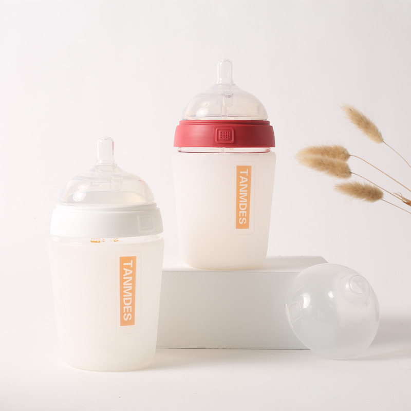 TANMDES wide mouth glass bottle Newborn baby straw with silicone protective cover bottle