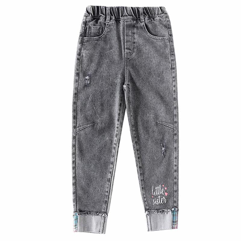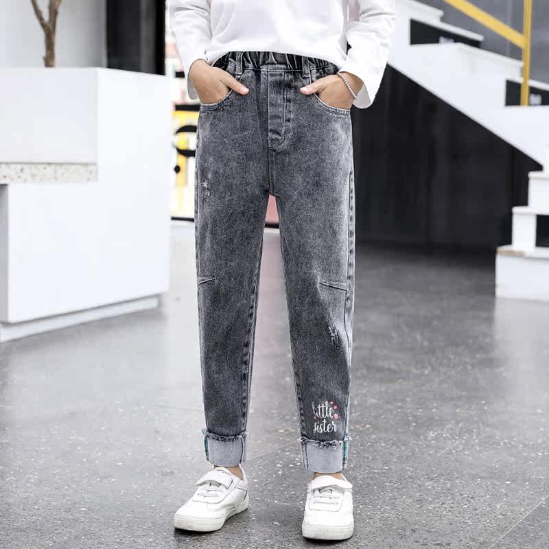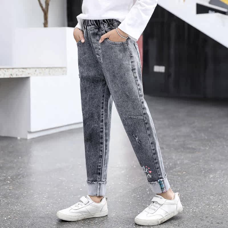Girls ' pants spring children's casual jeans 2021 new spring and autumn children's foreign school smoke gray pipe pants