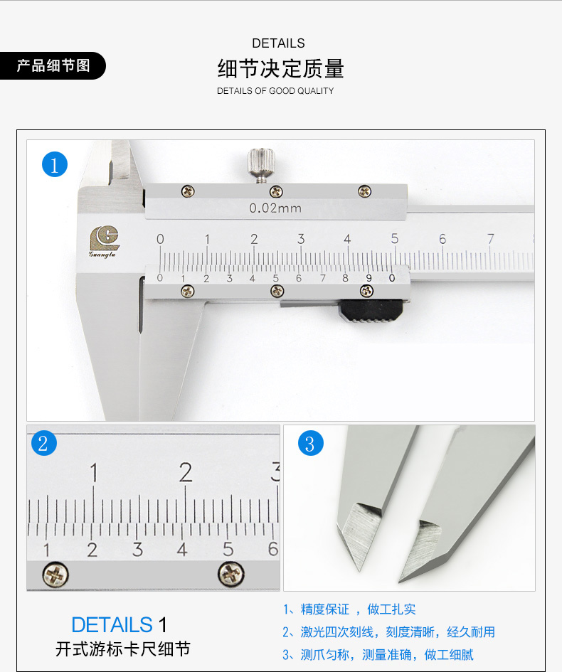 Guanglu vernier caliper 0-150 200 300mm high-precision 0 02 four-use line card line ruler caliper
