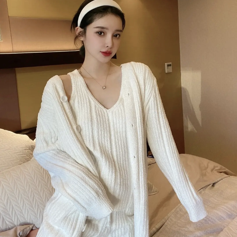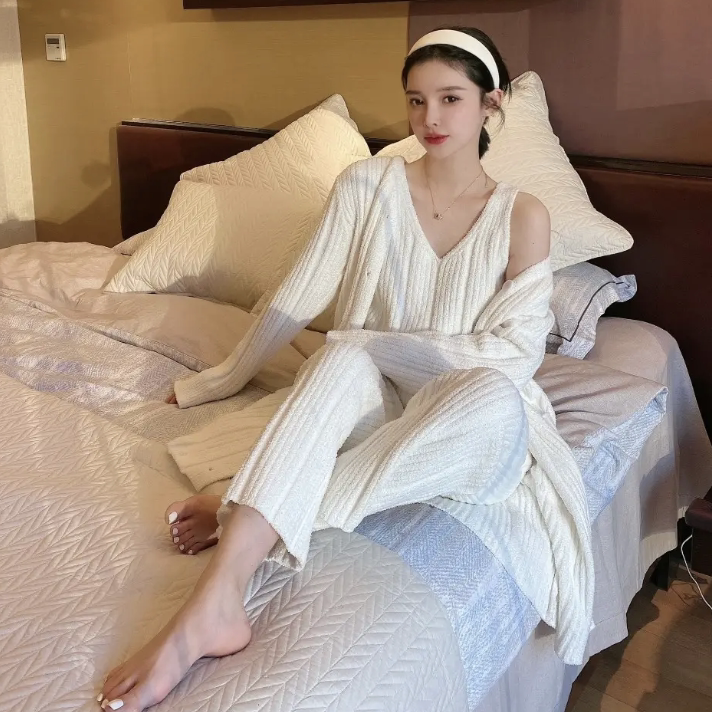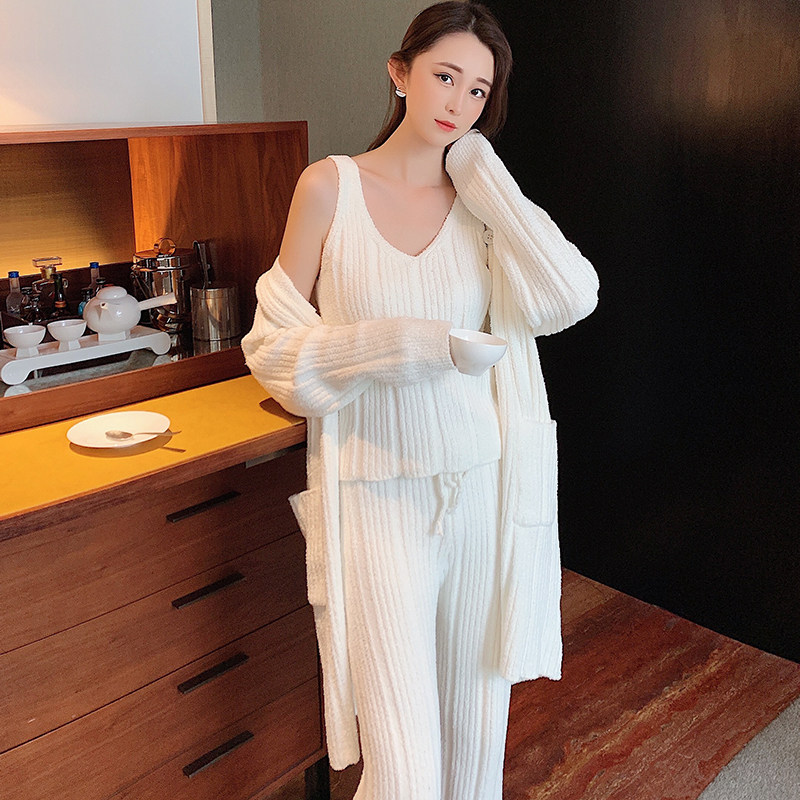 Soft Mianian pyjamas women's autumn and winter trendy foreign pie can be worn out of sweet and sweater line Home Winter Warm Three Suits