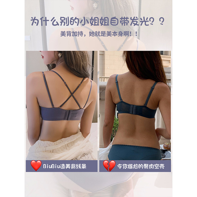 Sexy beautiful back girl underwear summer thin section female no steel ring comfortable gathering small chest adjustment type top bra