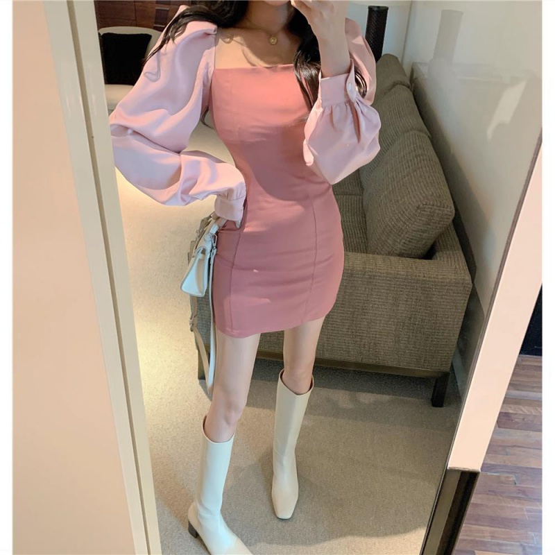 Temperament Goddess Van Collection Waist Long Sleeve Foreign Dress Women's Autumn 2022 New Sweet style square collar tight with hip dresses