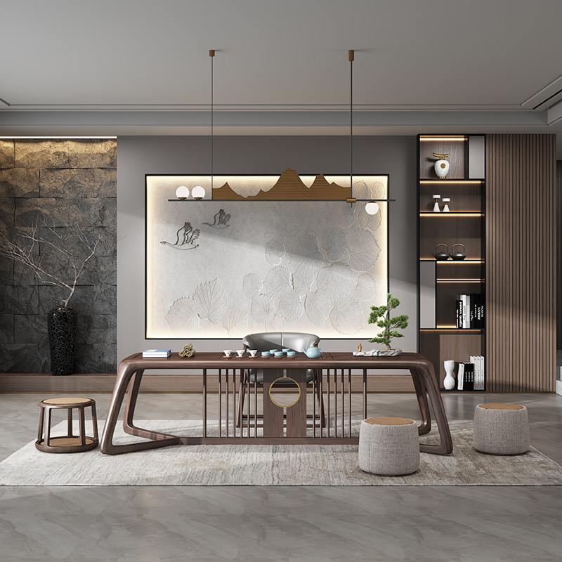 New Chinese tea table and chair combination Zen tea house solid wood tea table modern simple tea art table tea room space furniture