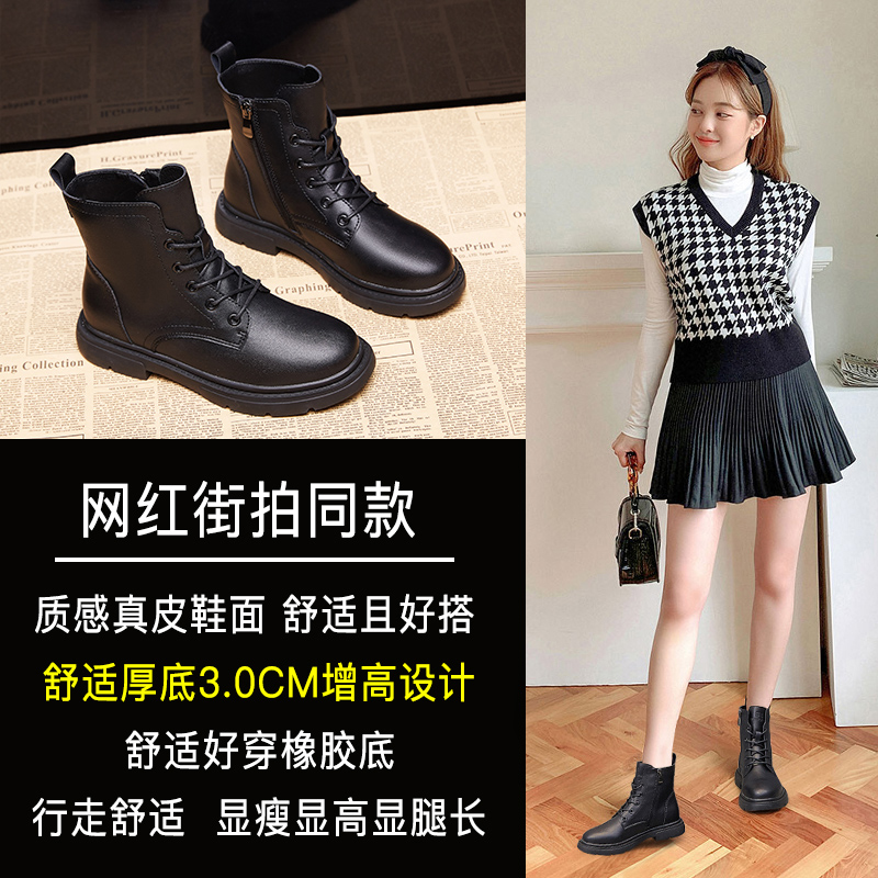 Daphne Martin boots women's boots spring and autumn 2022 new British style winter plus velvet leather explosion short boots trend