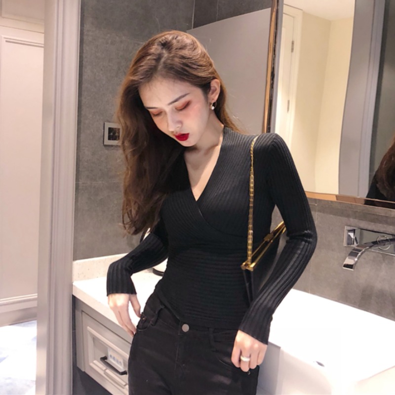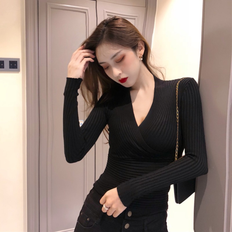 Sanskrit Sexy undershirt woman in spring for lap up V pilotage Wind fashion 100 hitch for a long sleeve knit blouse