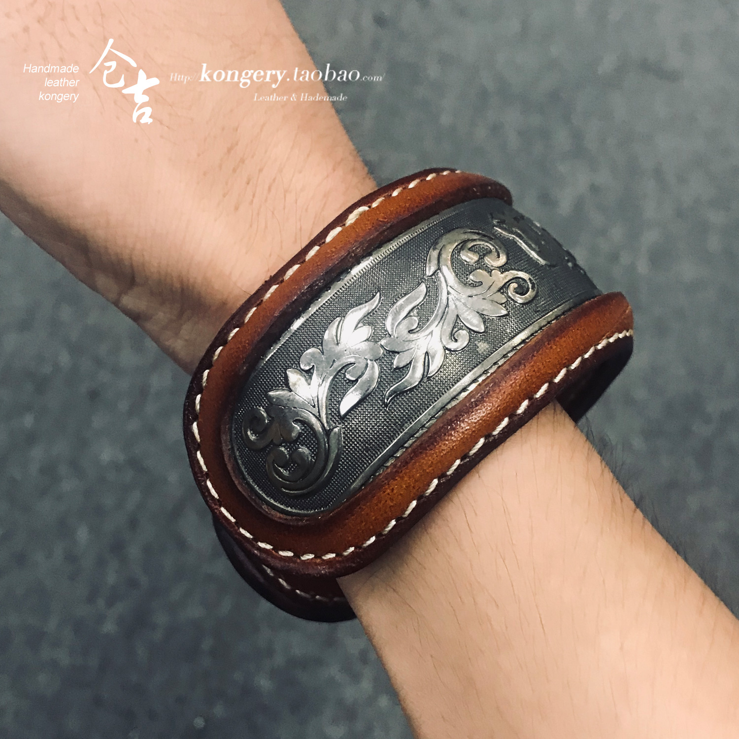 Bin Ji Handmade Genuine Leather Bracelet Bull Leather Bracelets for men and women Gifts White Brass Retro Fashion Individuality New Pint