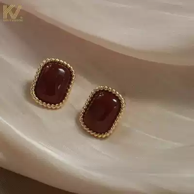 Ear needle female sterling silver retro temperament French Hong Kong style palace light luxury earrings 2021 New Tide advanced earrings
