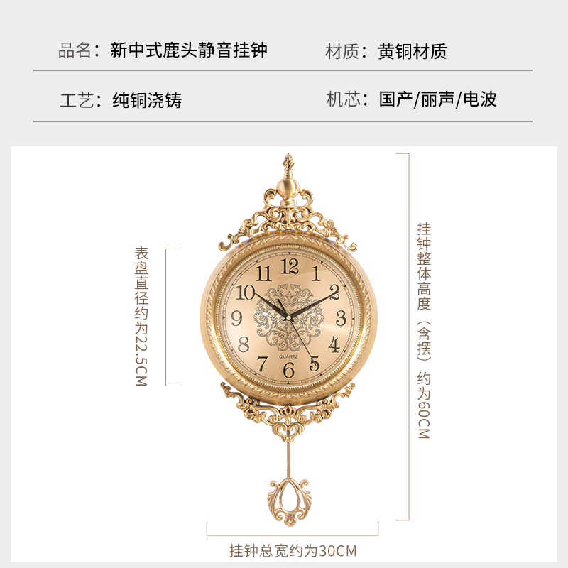 European pure copper wall clock Living room modern simple light luxury watch household fashion Nordic creative personality hanging watch clock