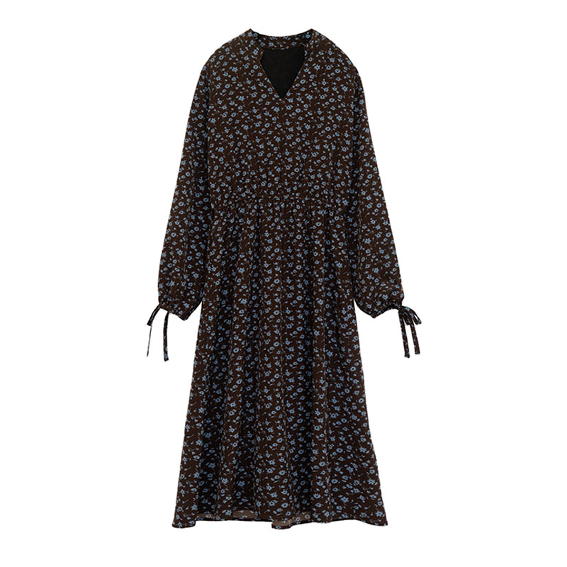 2021 New Spring Autumn dress women floral skirt skirt French gentle temperament small fragrant wind black chiffon summer