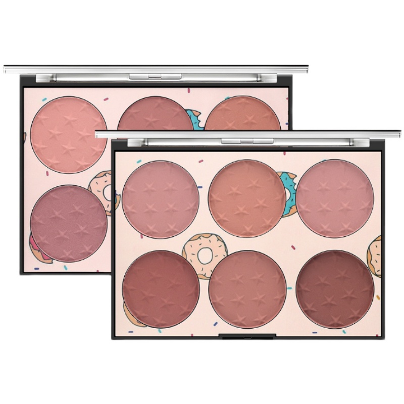 miss rose six colours blush pan nude makeup natural sunburn red rouge, high light integrated multicolor composition 6
