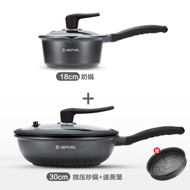 30cm Micro-pressure wok 18cm Milk pot 30cm Micro-pressure wok 26cm Frying pan 30cm Micro-pressure wok 26cm Frying pan 18cm Milk pot