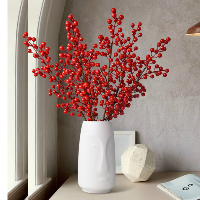 Red fruit fortune fruit holly simulation flower New Year's Eve flower blessing bucket New Year flower arrangement material pendant Spring Festival decoration gold leaf