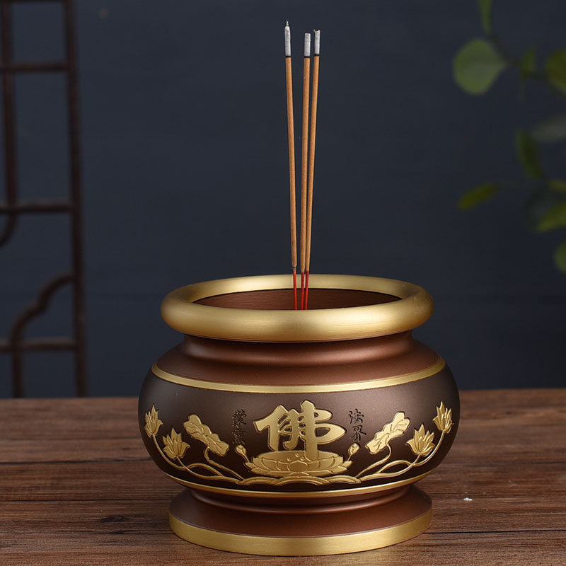 Taiwan pure copper for the Buddha incense burner home room to worship the immortal god of wealth lotus flower zhao cai into the treasure Buddha before burning incense incense