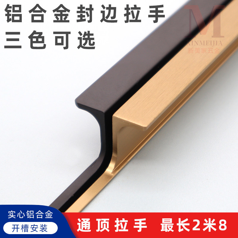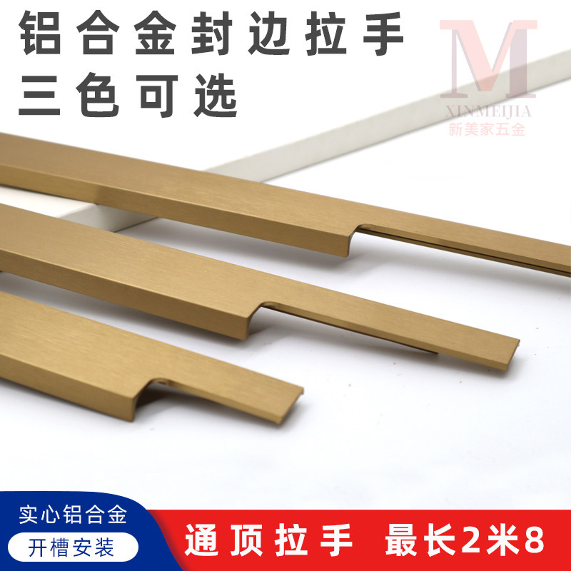 One-to-top seal edge f type long handle ancient copper wire drawing gold wardrobe door extremely brief body wrap side integrated long handle