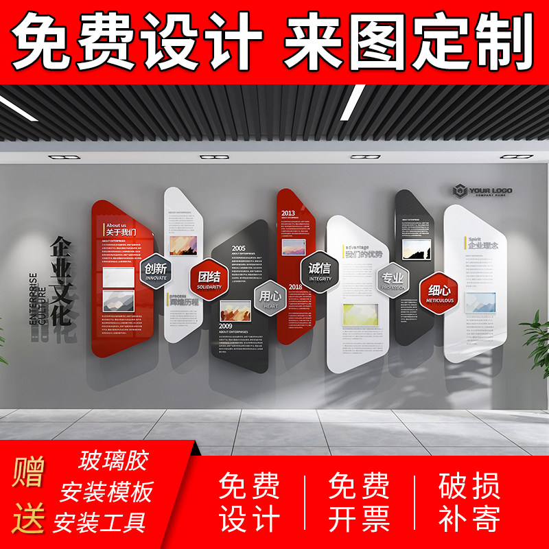 Corporate culture wall custom office team culture wall sticker design 3D three-dimensional staff style wall acrylic