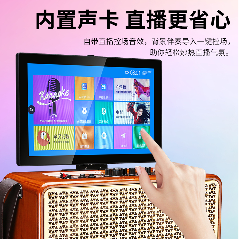 Lenovo V01 square dance audio with display screen large screen pull rod shoulder back handheld video speaker outdoor K song all in one machine mobile KTV song dancing with wireless microphone video player