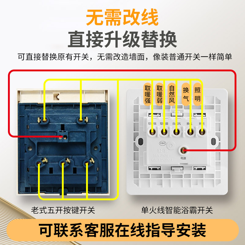 Bull yuba switch five-open four-open bathroom powder room universal intelligent exhaust fan Lighting one-piece 5 five-in-one