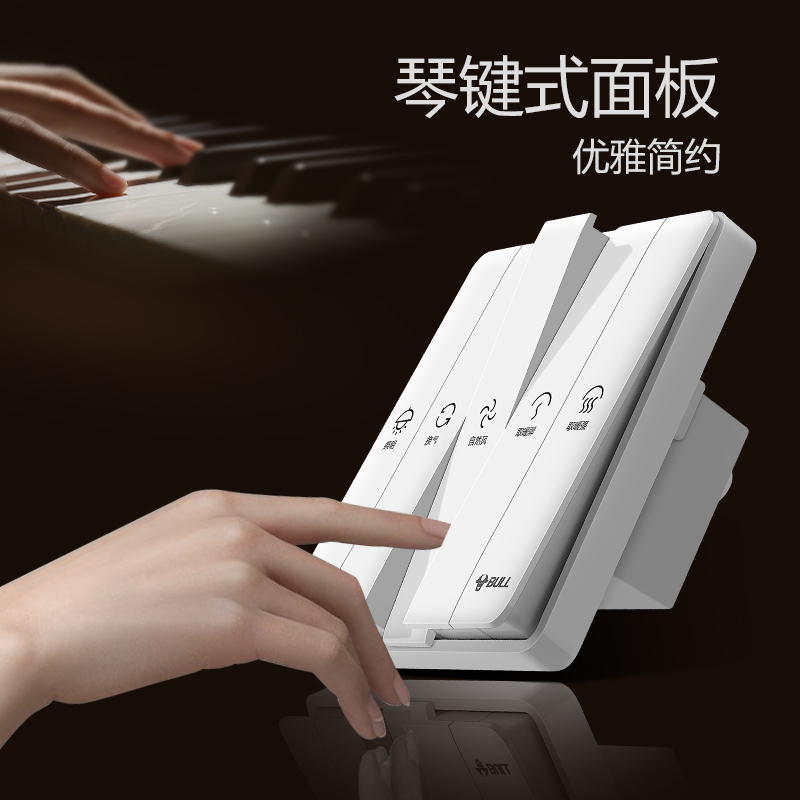 Bull yuba special switch five-open household universal bathroom switch Five-in-one powder room large plate switch